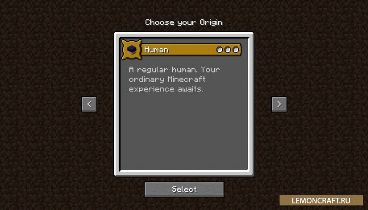 Мод на происхождение Origins добавляет в игру новое понятие, при входе в новый мир вам будет нужно выбрать свое происхождение. В зависимости от того, что вы выбрали, вы будете получать те или иные бонусы и отрицательные эффекты, которые скажутся на дальнейшей вашей игре.
