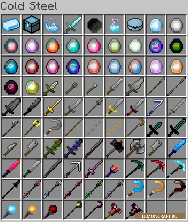 Мод на холодное оружие Colds Steel добавит в игру новые варианты холодного оружия включающие в себя кинжалы, топоры, молоты, посохи. За каждый удар нанесенный этим оружием, оно будет получать опыт. За счет опыта можно повысить ранг оружия, что улучшит его характеристики и даст ему новые способности.
