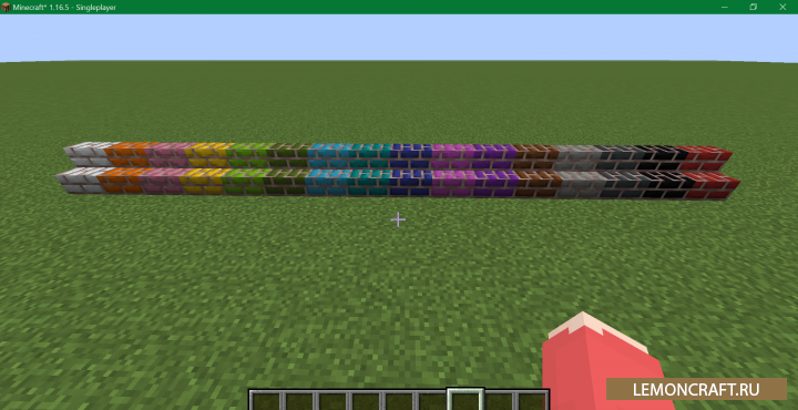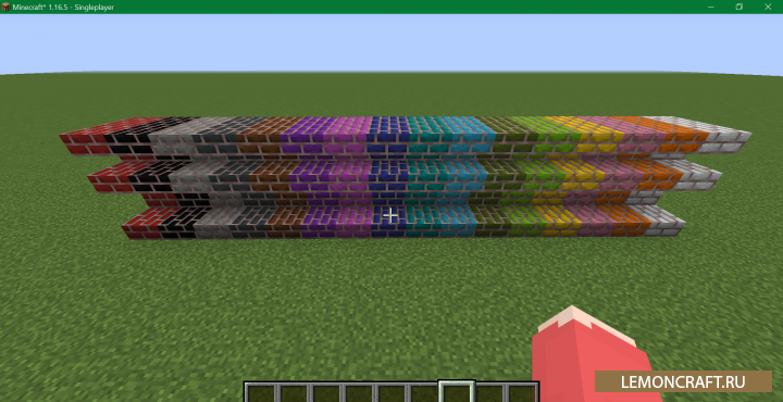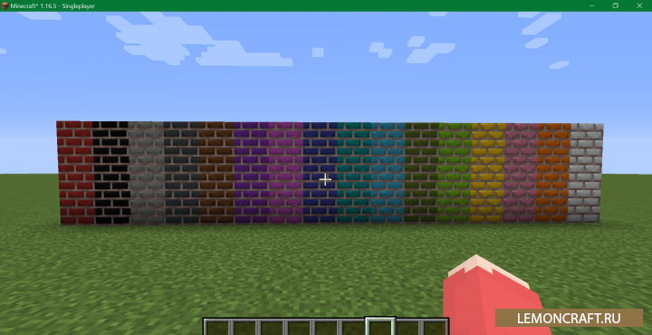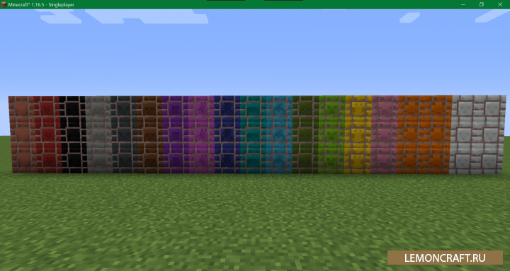 Мод на цветные кирпичи Colored Bricks добавит в игру просто огромное количество вариантов кирпичных блоков, лестниц, полублоков и резных блоков различных цветов. Этот мод отлично подойдет для декорирования ваших построек и мира в целом.